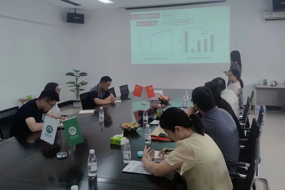 河南省包装技术协会秘书长王鹏业、河南牧业经济学院包装与印刷工程学院院长张岩、包装材料团队的丁艳红博士、康星雅博士、徐莉博士、王建闯博士、孙呵博士参会。新生印务有限公司董事长时双双、总经理时磊,副总经理胡明顺对王鹏业秘书长一行的到访表示热烈欢迎,时双双对公司的发展历程、近期的生产经营状况以及新产品的研发情况作了简要介绍。接着,张岩院长绍了河南牧业经济学院包装工程专业的发展历程、专业建设、人才培养、师资队伍和科研平台建设等情况。康星雅博士分享了学院在生物质包装材料、食品活性包装和智能包装方面的特色科研成果。张岩院长希望今后根据企业实际需求,开展深入合作,共同进行技术研发,开展不同形式的科技服务活动,提升科技服务质量,助力企业发展。